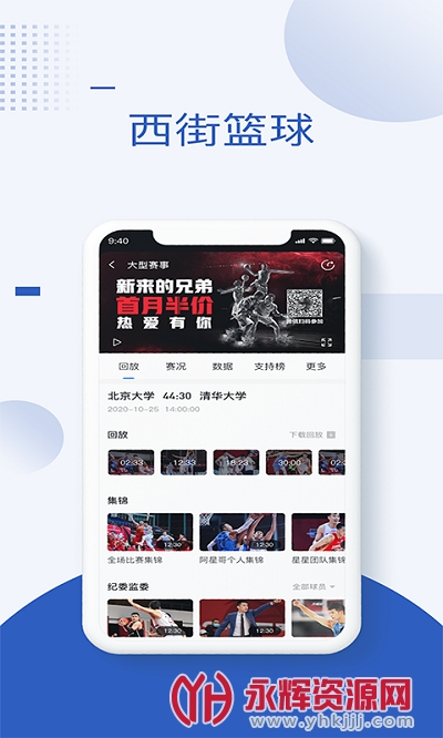 西街篮球app是为喜欢打篮球的朋友们提供的篮球综合服务软件,在软件中你可以了解到最新的篮球资讯,还可以实时观看篮球比赛,有需要的朋友们快来永辉资源网下载吧!