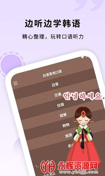 介绍性的韩语学习软件,包含专业的教学视频和音频教程。