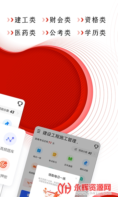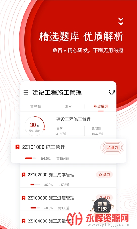 一站式解决刷题,听课两大需求!用看书30%的时间顺利高分通过考试。准题库主要覆盖2265考试为金融类,工程类,财会类,医药卫生类,资格类。金融类:基金从业,证券从业,银行从业,期货从业;工程类:一建,一级建造师,二建,二级建造师,造价师,注册造价工程师,注册安全工程师,注安,电气师,注册电气工程师,招标师,消防工程师,一级消防工程师,二级消防工程师;