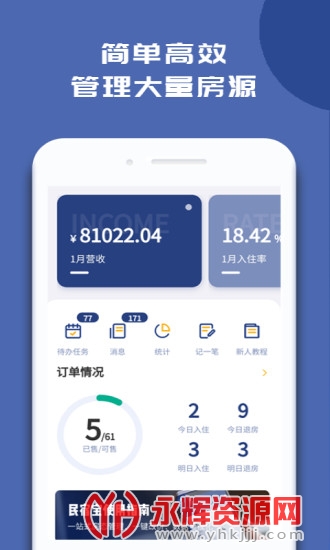 民宿宝是一个全球化的民宿客栈管理工具,为每一位精英房东提供高效管理系统化解决方案.支持一站式管理爱彼迎、途家、榛果等多渠道平台,具备查看房态、管理房源、即时改价、订单处理、经营数据统计等实用功能.