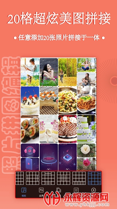 20格超炫美图拼接:任意添加20张照片拼接于一体。