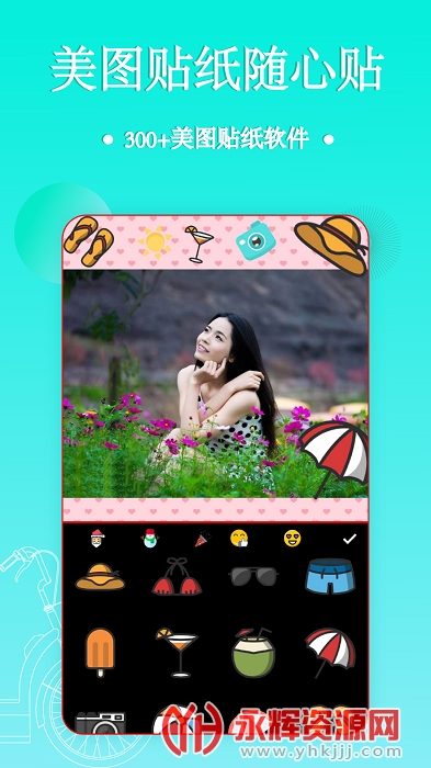 完美融合照片与美图贴纸:调节贴纸大小方向及位置。