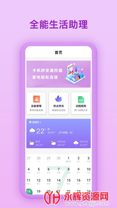 生活小帮手app是一款智能家居管理软件,可以通过软件连接各种智能设备,空调、电视和冰箱等,并实现远程操控,轻轻松松在线就能进行远程操控,非常的方便快捷,不用再到处找遥控器了,直接手机一键遥控!感兴趣的朋友们快来下载吧!