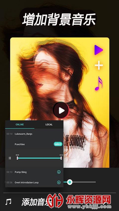 可以任意的添加各种你喜欢的背景音乐。