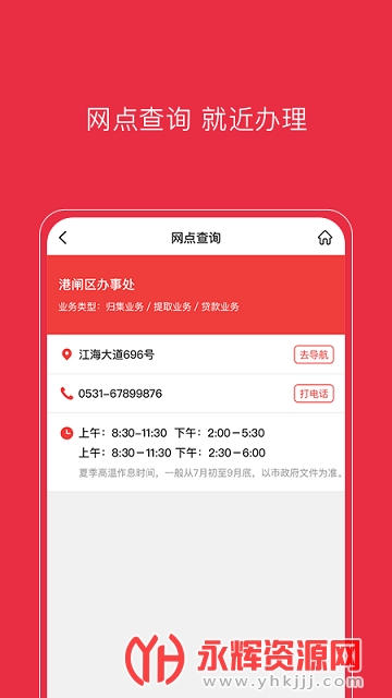 用户可以通过平台知晓网点上班时间以及业务类型,可以详细查看