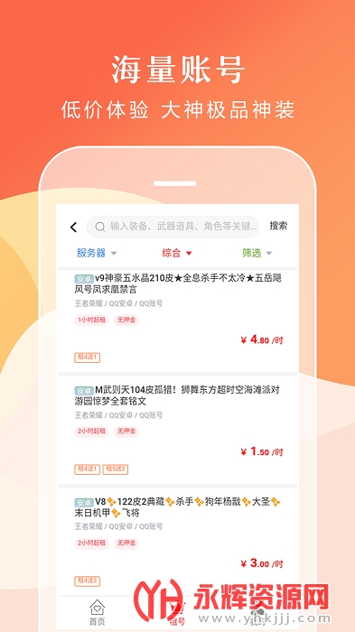 海量账号:低价体验大神极品神装。