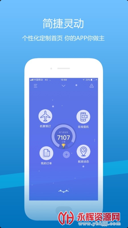 1、简捷灵动——航空公司APP也可以这么酷。还在使用传统的九宫格?还是千篇一律的界面?够啦,是时候改变一下了!山航掌尚飞推出动态交互个性化定制首页,你的APP你做主!