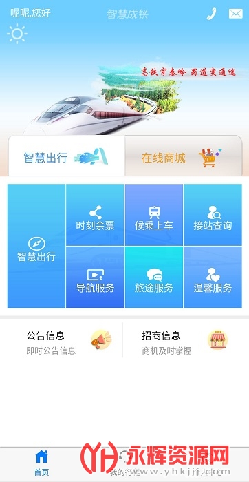 智慧成铁app是一款非常实用的出行软件,在上面会为用户提供各交通的资讯信息,用户可以非常清楚的看到相关的资讯内容,另外实现在线上购票等操作,您可以购买高铁票,机票,预订酒店等等,帮助您提供便捷的出行服务,能够及时的掌握全面的信息,欢迎有需要的朋友来下载使用吧!