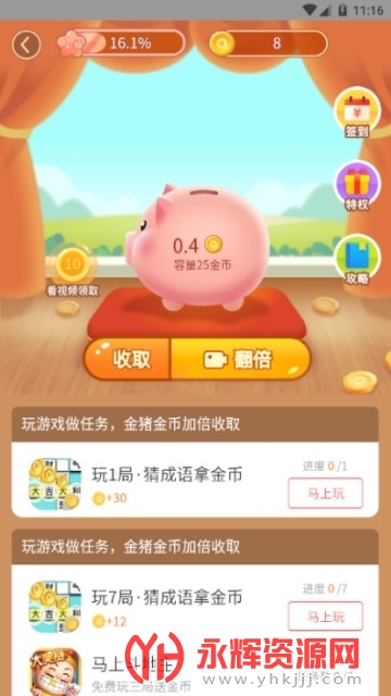 除此之外每日签到等等特殊活动也可以让玩家获得大量金币存进金猪储钱罐里.