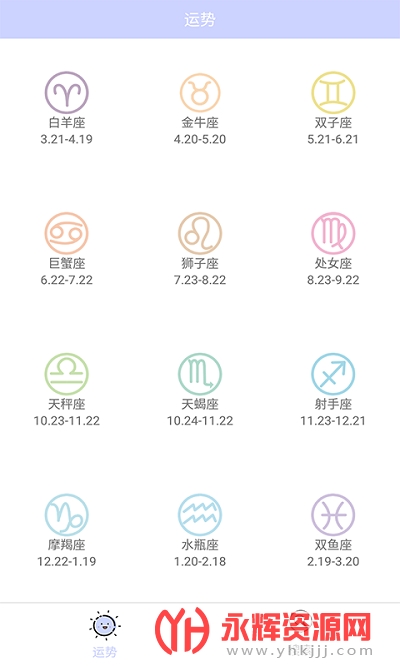 益趣星座查询手册app是一款十分专业的星座查询软件,在软件中你可以了解到各个星座的兴趣爱好以及性格特点,还可以查看星座的近期运势,有喜欢的朋友们快来永辉资源网下载吧!