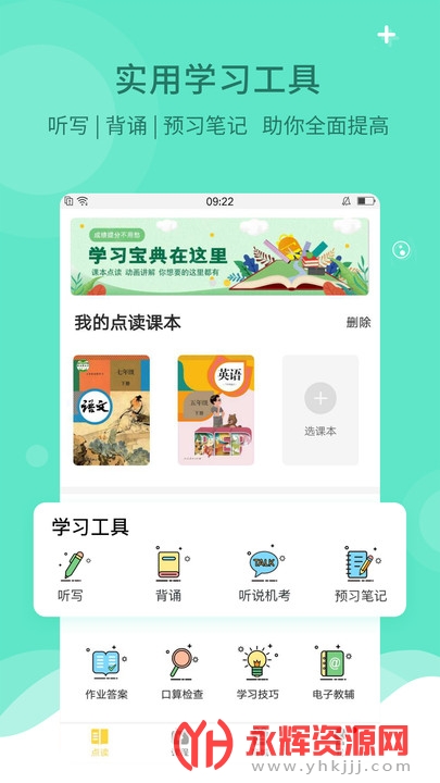 3、实用学习工具:听写、背诵、预习笔记,助你全面提高。