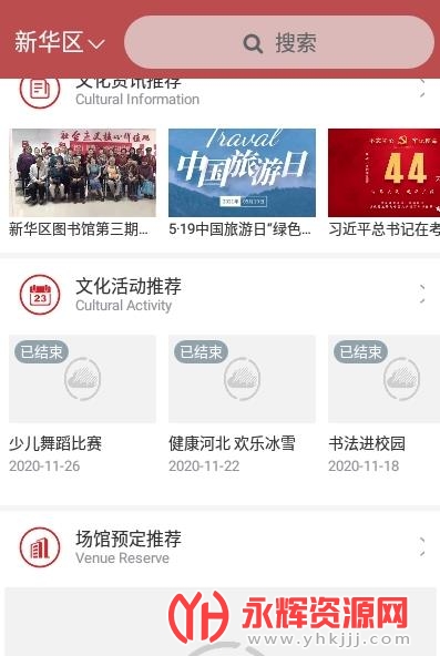新华区文化云app是为当地市民朋友们提供的融媒体服务软件,使用软件能让你不出门就了解到当地最新热点资讯,还可以办理一些生活服务功能,有需要的朋友们快来永辉资源网下载吧!
