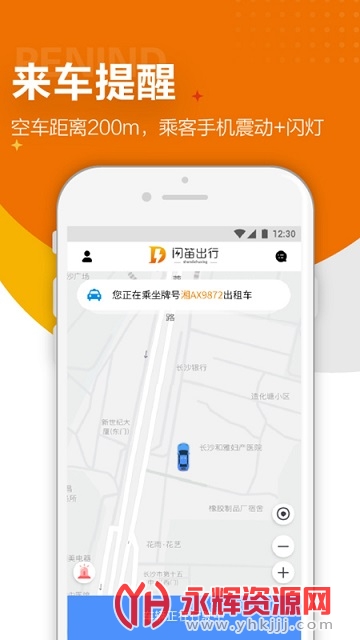 空车距离乘客150米左右,乘客手机自动闪灯;