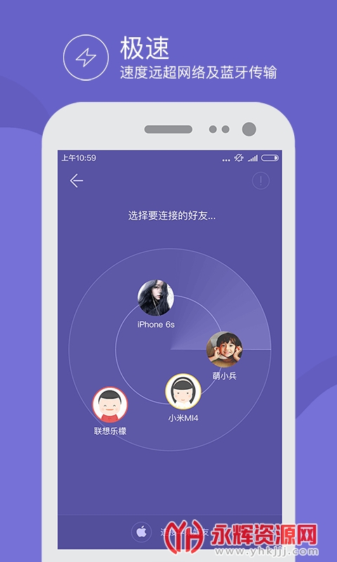 4、极速传:极速瞬间闪传,传输速度是蓝牙的150倍,1分钟可传200张无压缩照片、80首MP3、3部高清电影或5款重度手游