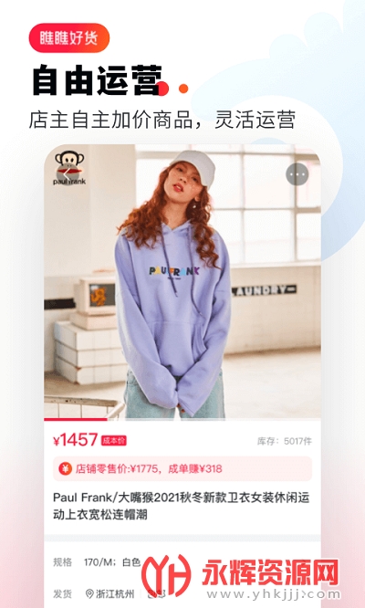 它为用户从来源中选择了大量高质量的好商品。质量有保证。店主可以随意提高商品的价格。看看好货。购物中心还拥有专业的培训和指导团队,教您轻松开设一家拥有大量大品牌商品的店铺。感兴趣的朋友,来看看好的购物方式吧!