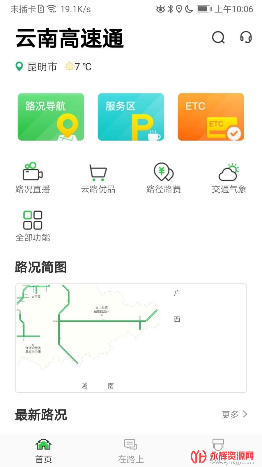 “云南高速通”是由云南省公路开发投资有限公司为公众推出的高速公路出行信息服务的移动应用,整合云南省实时路况、高速服务设备信息、路况导航、路费查询、路况报料等高速服务查询功能,提供ETC(云通卡)办理资讯、沿途旅游、客服热线、天气查询等轻松出行便民服务,为公众出行提供准确、便捷、个性化的交通信息服务。