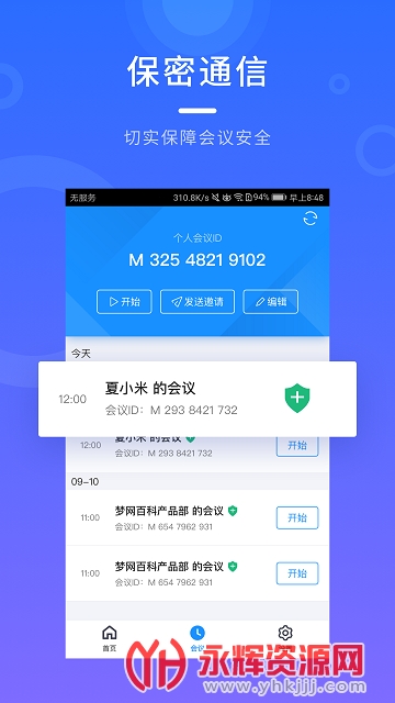 界面清爽简洁,一键预约、发起、加入会议;