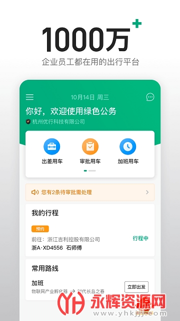 绿色公务企业版APP是一款非常不错的掌上出行服务手机软件,软件凭借了强大的互联网技术为用户打造了一个功能全面的线上网约车出行服务平台,在这里为用户带来了各种便捷的网约车服务,有需要的朋友就快来永辉下载体验吧!
