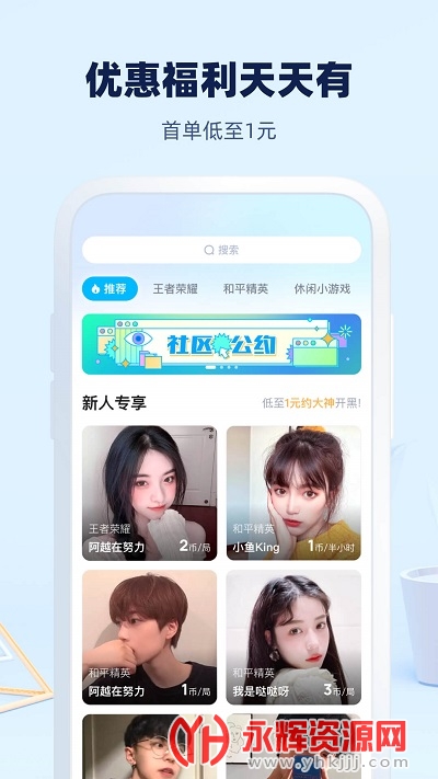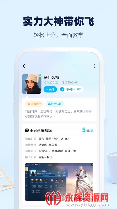 大神陪练app是为喜欢玩游戏的朋友们提供的手游陪玩平台,在软件中你可以找到许多技术高超的游戏大神语音陪你打游戏,让你有着更好的游戏体验感,对这款软件感兴趣的朋友们还在等什么呢?快来永辉资源网下载吧!