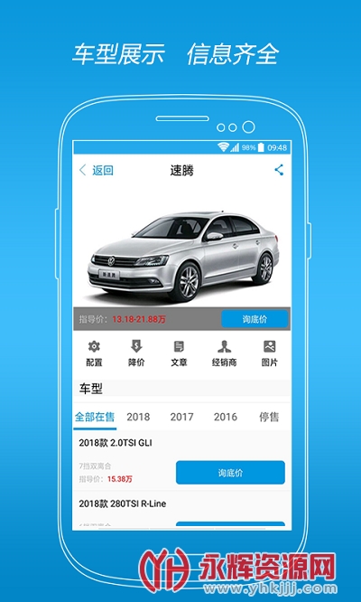 丰富车讯一手掌握,阅读汽车资讯的时候丰富的车讯内容可以自选阅读;
