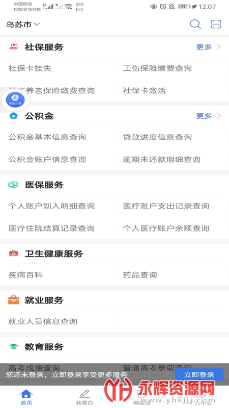 1.政务服务:老年证、再生育证、就业失业登记证、计划生育健康证、五保证等在线办理,可在线查询办事指南,一次就办成,何必跑多趟!