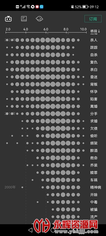 通过点击图表上的圆点,你可以看到相应的电视剧所对应的桥段。