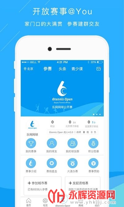 乐网网球app为广大网球爱好者提供专业度高服务度好的业余网球赛事服务平台。是以网球资讯、赛事举办、线下约球、交流互动为一体的综合网球类赛事app。