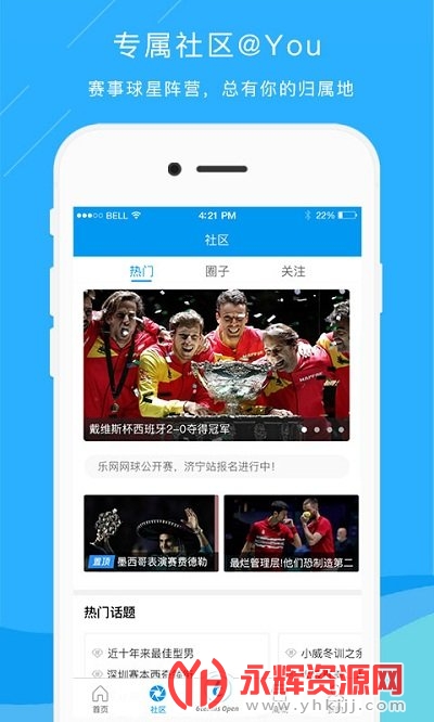 丰富的网坛资讯、社交圈子、个人中心等多项服务