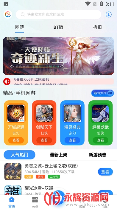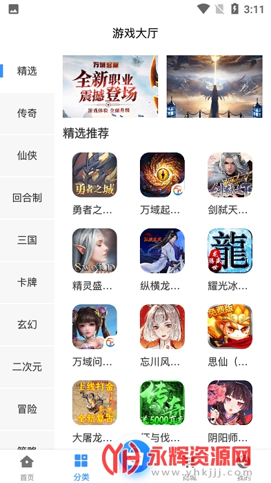各种不同类型的游戏进行了详细的划分,方便用户快速的查看。