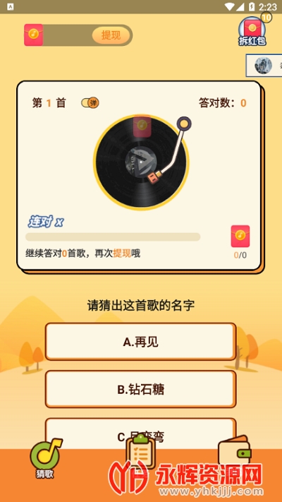 快猜歌极速版app是一款非常优质的猜歌赚钱软件,在这款软件中有着超多不同类型的曲目,猜猜歌就能赚取零花钱,还在等什么呢?快来永辉资源网下载吧!