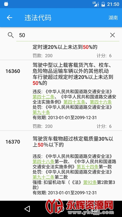 违法代码查询。路面执法还在抱着一本厚厚的代码,而且半天翻不到你要的代码?现在直接手机搞定。支持关键字模糊查询和精确代码查询,支持关联代码对应的法律条文。
