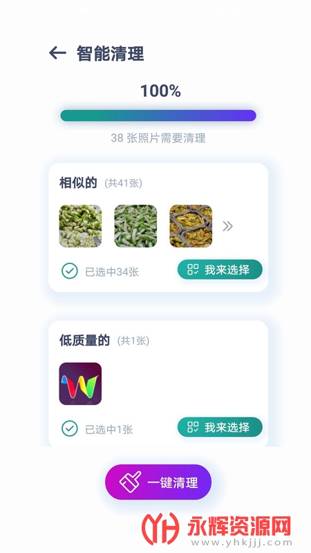 照片智能清理app是一款十分优质的相册管理软件,使用这款软件可以一键清除手机中的垃圾照片,为你节省手机空间,有需要的朋友们快来永辉资源网下载吧!