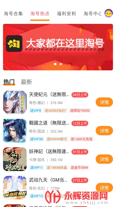 手游淘号app是为喜欢玩游戏的朋友们提供的账号交易软件,软件中有着不同游戏的极品账号,你可以在软件中进行购买,都是安全有保障的,有需要的朋友们快来永辉资源网下载吧!