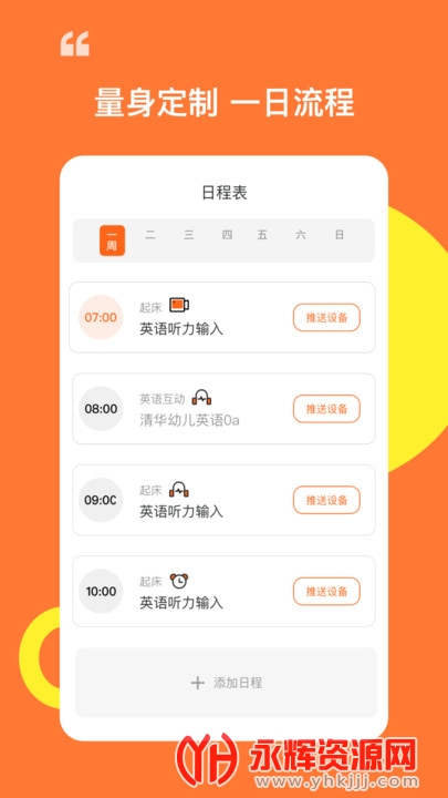 3、智能课表:自动推送定制化北美外教课程、专业磨耳朵英文材料,做到全美音的高效高频输入。