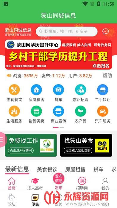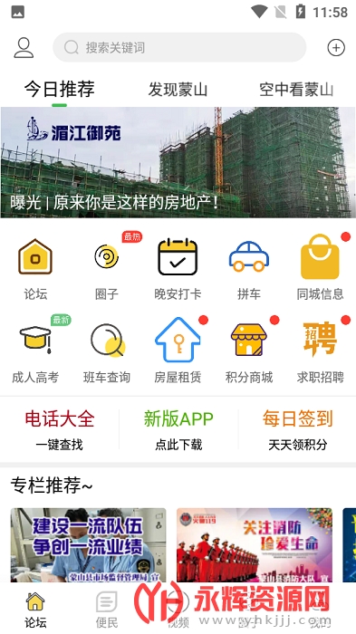 蒙山网app是一款智慧生活服务软件,软件上有着丰富的本地新闻资讯,和众多的便民服务,涵盖了拼车、房屋租赁和求职招聘等,为用户的日常生活提供了非常便利的服务,让生活更加舒适。同时还有着本地论坛,大家可以在这里发现身边发生的事情,足不出户也能够了解最近发生了哪些事情,非常的方便快捷!感兴趣的朋友们快来下载吧!