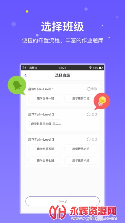 1、选择班级:便捷的布置流程,丰富的作业题库。