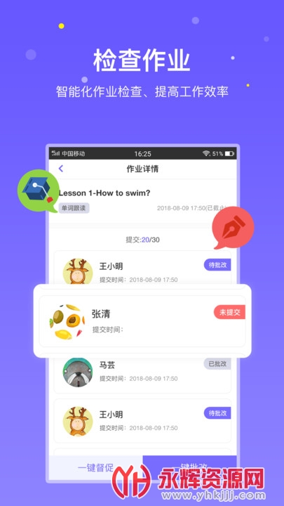 智能化批改功能,支持一键批改和一键督促功能,提高教师工作效率。