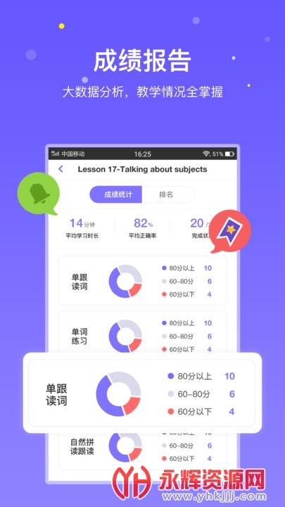 趣学英语老师端是趣学英语为教师提供的教学管理工具,教师可以通过App给学生布置作业,并进行作业批改,同时可以随时掌握学生作业的完成情况,实现智能教学。