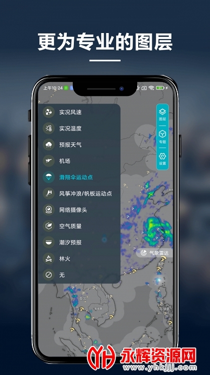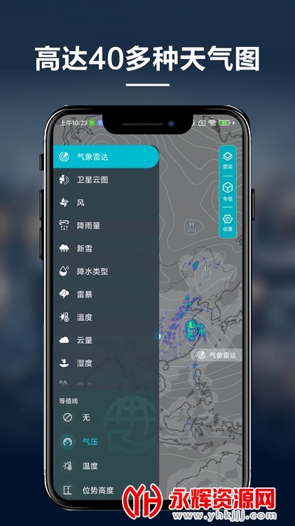 一款功能强大的专业可视化天气雷达图像工具,深受专业飞行员、天气爱好者的信赖,可以直观地看到当前位置的气候版块内容,由卫星实时传输数据提供。