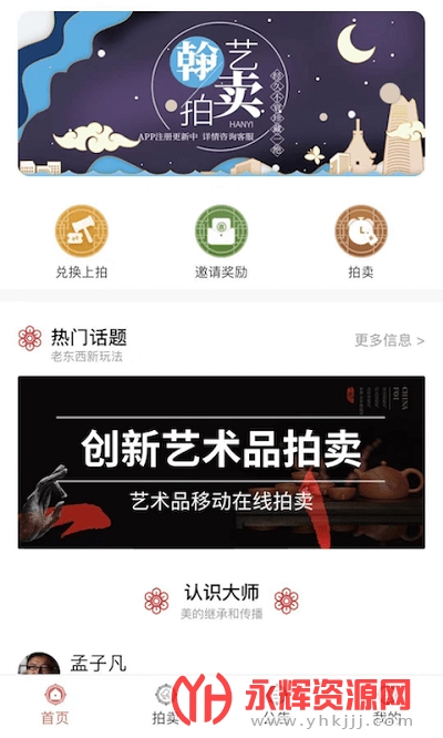 翰艺竞拍app是一款十分优质的线上拍卖平台,软件中有着超多艺术品进行拍卖,有需要这款软件的朋友们可以来永辉资源网下载使用哦!