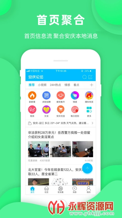 安庆论坛app是专为安庆本地用户打造的生活服务平台,是广大安庆本地人常用的APP。这款软件上有着丰富的本地新闻资讯,用户们可以实时了解最新的资讯信息。同时还有着各种便利的生活服务,涵盖了求职招聘、相亲和房屋租售等,为大家的日常生活提供了便利的服务。还可以在本地社区发现更多有趣好玩的事情,了解身边最新发生的事件,还能与大家一起互动交流,分享自己的看法!欢迎感兴趣的朋友们前来永辉资源网下载!