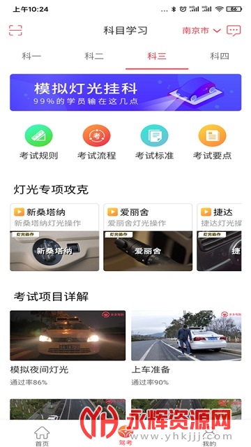 独家制作科目二、三高清教学视频,从操作要点、过程演示、考核标准到注意事项,详细呈现。更有灯光教学视频和驾考讲堂梳理驾考要点。