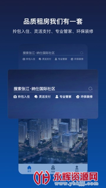 张江纳仕app是一款非常好用的租房服务软件,软件中的房源十分丰富,你可以选择喜欢的户型进行租赁,有需要的朋友们快来永辉资源网下载吧!