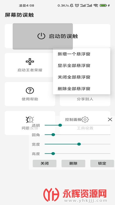 屏幕防误触app全新为广大用户提供的手机防误触工具,能够更好的去帮助大家自定义悬浮窗来然后进行误触,更好的去帮助大家减少手机误触,感兴趣的朋友快来下载体验吧!