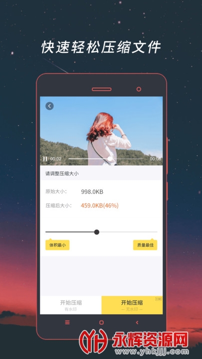 2、视频压缩,五级选择,清晰的选择到你所喜欢的相应视频,时时刻刻都展现到给你最需要的压缩服务。