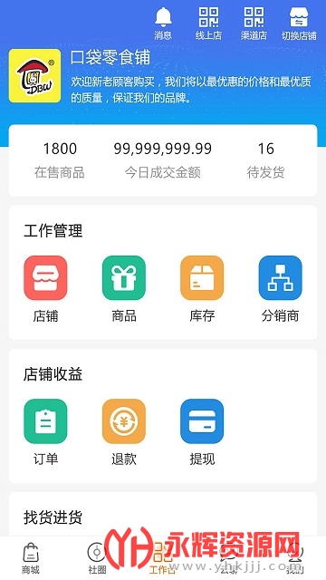 厂家和商家可以在工作台内进行商品、库存、订单、分销商、员工的管理,支持手机和电脑操作;