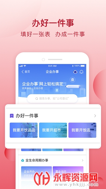 办好一件事:提供主题事项的移动端办理,目前已上线“我要开超市”、“我要开饭店”等八十项办好一件事主题服务。