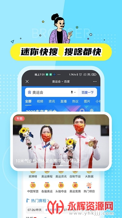 迷你快搜app是一款非常好用的手机搜索引擎软件,使用这款软件可以快速搜索到你感兴趣的内容,有需要的朋友们可以来永辉资源网下载使用哦!