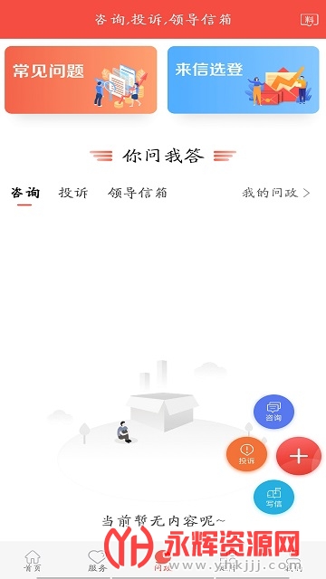 提供了政务服务大厅,还可以在线发布投诉、建议、反馈等信息直连政府。