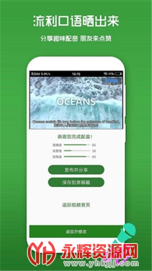 4、【全新的方式】摆脱枯燥无味传统学习方式,模仿配音、生词翻译、作品分享,随时随地玩配音,通过配音学习英语、提升英语口语。